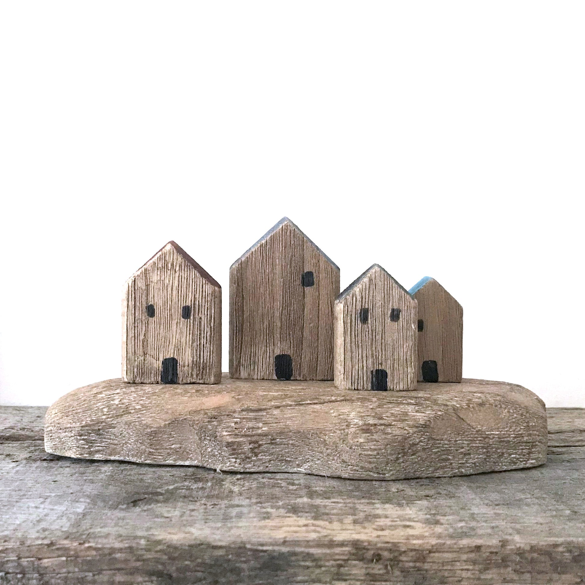 Minimalist, Nordic-style wooden cottages with a shot of colour on their windswept roofs. The simple design of this lovely shelf decoration speaks for itself, and would work with any style of decor.