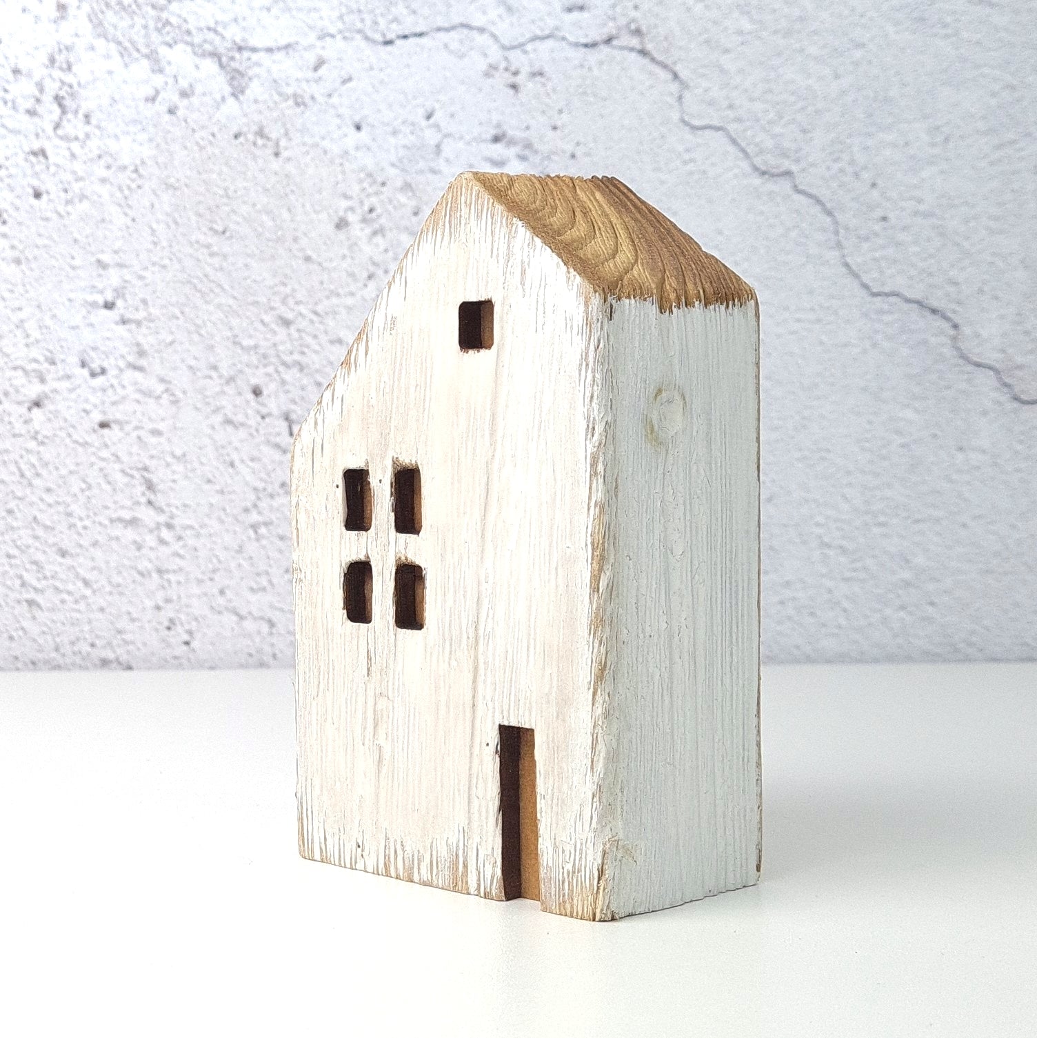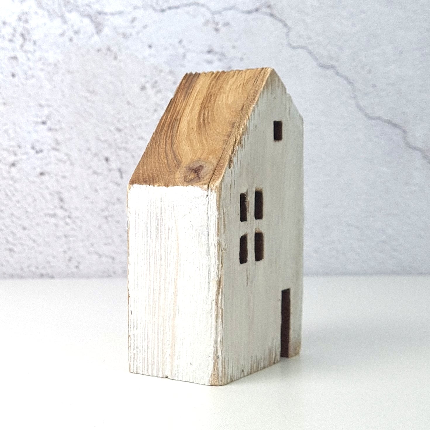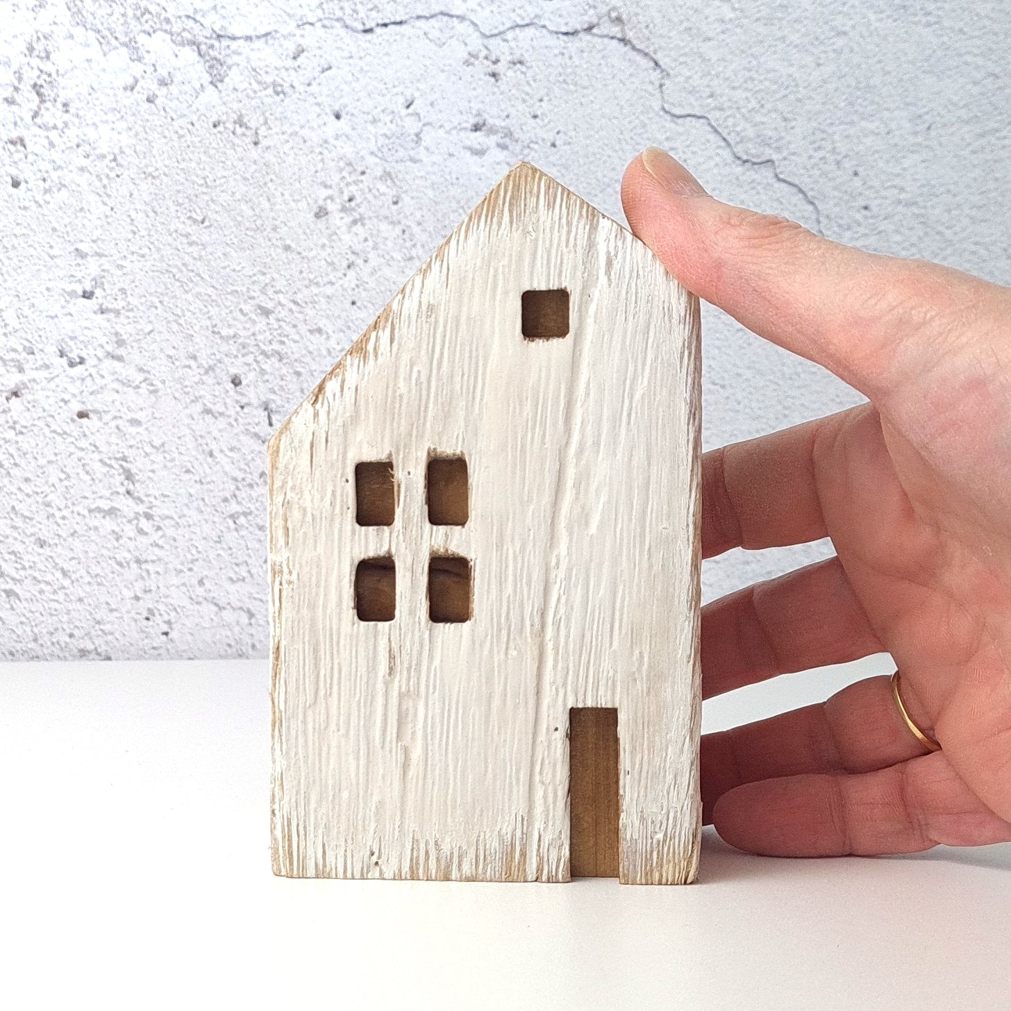 This sweet wooden cottage is a charming, rustic-style shelf decoration, handpainted in white to complement any style of decor.
